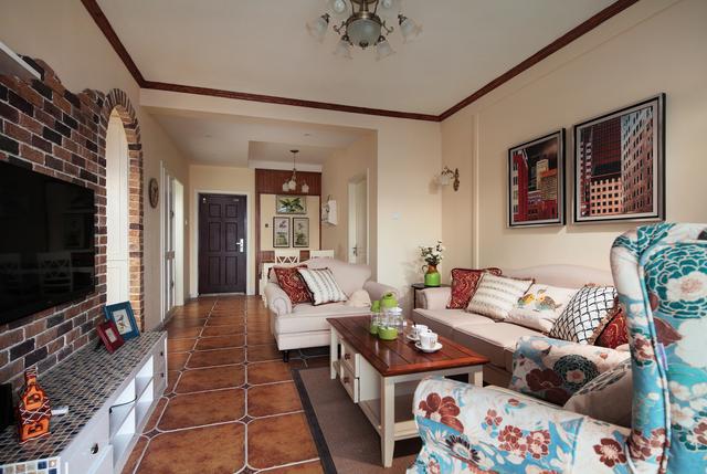 电视墙是我家最特别的一个地方,造型很有趣,感觉会比经典的美式壁炉造型好看,砖砌的墙面很有复古的味道~